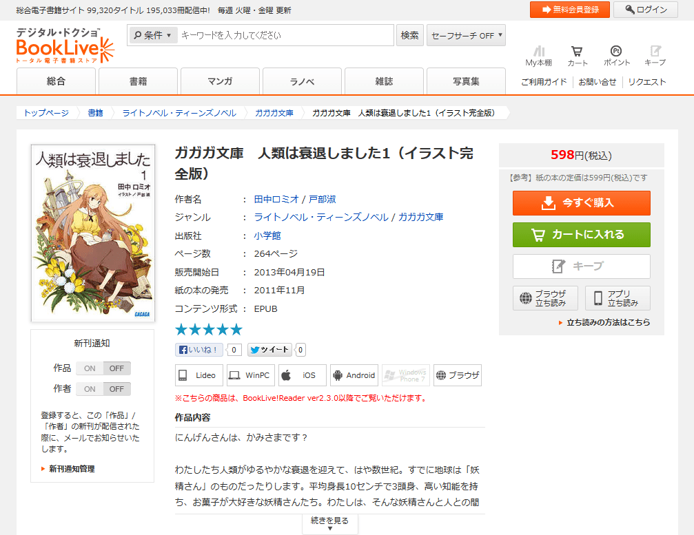 あと、「人類は衰退しました」の廉価版はXMDFで、イラスト完全版は基本的にEPUBなんですが、GALAPAGOSだけイラスト完全版が1~7巻まではXMDFで8巻はEPUBというわけのわからない状態になっていました。なんだこれ。